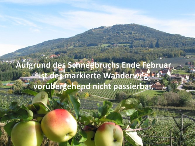 Das Tor zum Apfelland. Ein Erlebnis für Körper, Geist und Seele, Rundweg geeignet für die ganze Familie. Der vielseitigste Wanderweg in Puch bei Weiz Genießen und Erholen- auch Peter Rosegger schrieb seinerzeit, als er das Apfeldorf besuchte "Als ich ins Paradies ging".